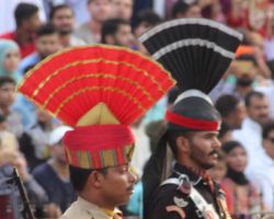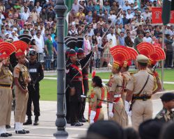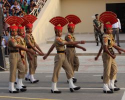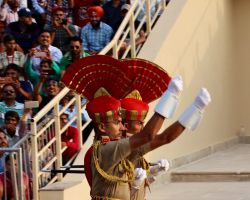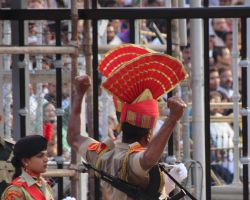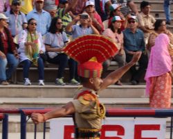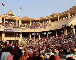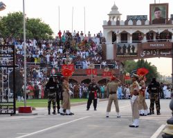 Am Abend dürfen wir auf der VIP-Tribühne für Ausländer neben tausenden Indern direkt an der pakistanischen Grenze ein besonderes Theaterstück sehen: Die Grenzschließungszeremonie. Mit extrem lauter Musik, einem Animateur, der das Publikum zu Schlachtrufen anheizt, wildem Tanz zu indischer Partymusik und Soldaten, die im Stechschritt zum großen Grenztor laufen und ihre Muskeln zweigen, wird den Pakistanern auf der anderen Seite die Stärke der indischen Armee und die Überlegenheit Indiens gegenüber Pakistan demonstriert. Umgekehrt tun die Pakistaner genau dasselbe, allerdings sitzen da nicht ganz so viele Leute. Ob es drüben genauso laut ist, können wir bei dieser Beschallung nicht wahrnehmen. Am Ende wird die Grenze, also das große Schiebetor zugeschoben und die Grenze bleibt die ganze Nacht geschlossen. Alle scheinen zufrieden zu sein, wir finden das Ganze sehr befremdlich.