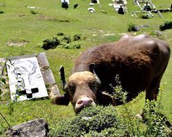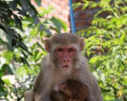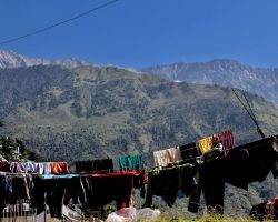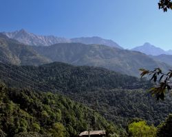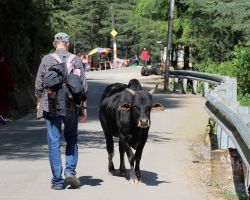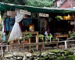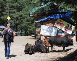 Der Weg dorthin führt am Ganges entlang durch die Berge und Wälder. Auf dem Rückweg begegnen wir einem fleißigen Handwerker, der auf einen Strommasten klettert und diesen ohne Pinsel wieder schön silbern anstreicht. Der zweite Mann ist damit beschäftigt den Farbeimer an einem Band, das über der Stromleitung hängt, auf und ab zu bewegen oder auch nur festzuhalten, so dass der Eimer für den Anstreicher die richtige Position hat. Und weil der Strom für diese Aktion ausgeschaltet wurde, bekommen wir im Café um die Ecke nur kaltes Essen und warme Getränke. Das macht aber nichts, denn es scheint recht sauber zu sein. In der German Bakery gibt es sogar Leckereien aus der Heimat!