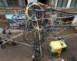 Die Jauche bleibt stellenweise nicht knietief und wir müssen uns an Gittern entlanghangeln um nicht schwimmen zu müssen. Schuhe, Müll, Kuhscheiße und sonstiger Unrat schwimmen an uns vorbei und um uns herum. Ein Stromkasten, an dem wir uns festhalten müssen, weist uns auf die Gefahr von 415 Volt hin. Aha. Nach über einer Stunde dieses völlig (über)flüssigen Abenteuers gelangen wir endlich irgendwann zum Hotel.