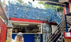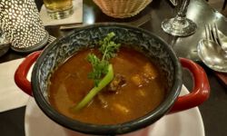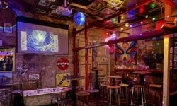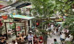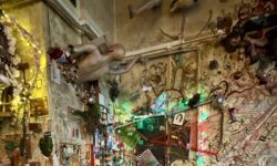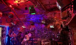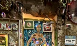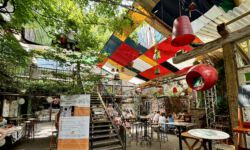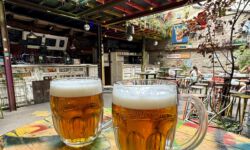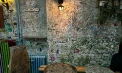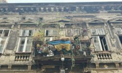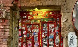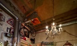 Nach der Ankunft mit dem Fahrrad am Parlamentsgebäude fahren wir in unser Apartment neben dem Opernhaus. Es liegt östlich der Donau und somit im größeren Stadtteil Pest. Die Räder stellen wir einfach ins Wohnzimmer, so können sie nicht geklaut werden. Die Stadt können wir gut zu Fuß erkunden. Wir machen uns erst einmal auf ins jüdische Viertel, das nicht weit entfernt liegt. Hier gehen wir in die coolste Ruinenbar auf dem Planeten, ins Simpla Kert (= einfacher Garten). Der Eingang ist schon der totale Punk und im Innenhof und in den Räumlichkeiten ist alles aus übrig gebliebenem Material wie alte Türen, ein Trabbi, rostige Gartenzäune, eine alte Telefonzelle, Schlittschuhkufen, usw. zusammengehauen. Es gibt mehrere Theken mit angemalten Barhockern, angekrickelte Wände und viele schummrige, bunte Räume. Wir finden’s grandios! Sie ist so herrlich unkonventionell und aus vielen verschiedenen Baustoffen total ungewöhnlich designed. Zu Essen gibt es hier nichts, so dass wir uns um die Ecke in ein schönes Restaurant mit traditionellen ungarischen Speisen setzen. Dort spielt sogar jemand Klassiker auf dem Klavier. Dieses Restaurant ist das krasse Gegenteil zum Szimpla Kert, wir finden beides gut.