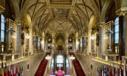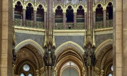 Am näxten Morgen gehen wir zuerst zum Parlamentsgebäude, das direkt am Donauufer liegt und eine 268m lange Fassade besitzt. Ich habe im Vorfeld Tickets für eine Führung durch das Gebäude besorgt. Wir bekommen ein Audiogerät und gehen zusammen mit einer Gruppe durch das sehr imposante Gebäude. Dort liegt auch die alte Krone vom ersten christlichen König Ungarns, dem heiligen Stephan, die von zwei Soldaten bewacht wird. Der Sitzungssaal des Parlamentes ist äußerst beeindruckend, genauso wie das goldene Treppenhaus und der Eingang für Regierungsmitglieder. Nach der Führung gehen wir an der Donau entlang und sehen uns die vielen Schuhe aus Metall an. Auf einer Länge von 40 Metern wurden sechzig Paar Schuhe dort angebracht. Sie stehen dort als Mahnmal für die Massenerschießungen von Juden im zweiten Weltkrieg, die hier stattgefunden haben.