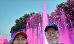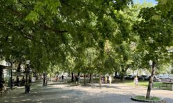 Dann gehen wir über die Andrássy Straße, die berühmteste Prachtstrße in Budapest. Sie verbindet auf rund 2,3 Kilometern Länge die Innenstadt mit dem Heldenplatz. Hier findet man viele Villen und Palais der Neorenaissance. Unter der Straße verläuft die Földalatti, die älteste U-Bahn auf dem europäischen Festland, die 2002 zum UNESCO-Welterbe ernannt wurde. Unser Weg führt uns weiter zur Margareteninsel, die zwischen Buda und Pest liegt und über die wir gestern bei unserer Ankunft schon gefahren sind. Es zieht uns zum großen Springbrunnen, der den ganzen Sommer mit Musikuntermalung in wilden oder auch ruhigen Formationen Wasser in die Luft sprudelt. Abends kommt dann eine Lichtshow hinzu und wir können auf Stühlen am Springbrunnen sitzen und das Schauspiel genießen. Wir bleiben lange bis es dunkel ist und gehen dann über die Donau zurück nach Hause.