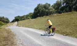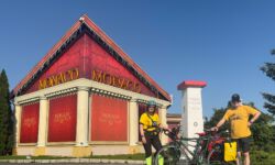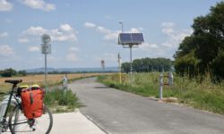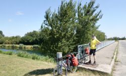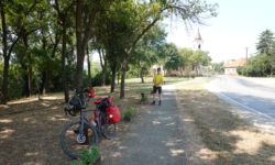 Nun sind es nicht mehr viele Kilometer bis Eszetergom und wir sehen tatsächlich mal zwei Fahrradfahrer mit Gepäck, die so wie wir unterwegs sind. Davon gab es bisher nicht viele. Leider ist die Trasse dann zu Ende und es folgt wieder eine sowjetische Buckelpiste mit Betonplatten, die nicht bündig verlegt wurden. Unsere Fahrräder rumpeln mitsamt dem Gepäck darüber und die Taschen hüpfen permanet hoch und runter. Ich höre mittlerweile irgendein Schaben an den Packtaschen, kann den Fehler aber nicht mal eben finden. Also geht es einfach weiter, denn wir haben nur noch wenige Kilometer bis zum Ziel.