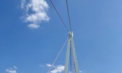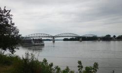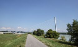 Dann erreichen wir die Brücke, auf der wir wie gestern schon die Donau in Richtung Ungarn überquert haben. Jetzt geht es wieder in die Slowakei, das Land ohne Schatten, denn in Ungarn gibt es keinen schönen Radweg an der Donau entlang. Zumindest nicht auf diesem Stück. Wir passieren das Casino und dann geht es ab auf die Piste. Das ist wieder eine Hochtrasse durch die Sonne. Aber der Belag ist schön glatt und es lässt sich gut fahren. Heute kommt der Wind zeitweilig von vorne oder er fehlt einfach. Aber wenn wir fahren, haben wir ja immer etwas Wind um die Nase.
