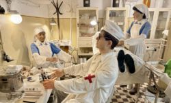Von da aus gehen wir in das ehemalige Felsenkrankenhaus, das hier als Luftschutzkrankenhaus zur Zeit des 2. Weltkriegs, als deutsches Hauptquartier 1945 sowie als Atomschutzbunker des sozialistischen Ungarns genutzt wurde. Innerhalb einer Führung erfahren wir wie die Soldaten und später auch die Zivilbevölkerung hier unter furchtbaren Bedingungen (wie zu wenig Platz, fast keine Medikamente, zu wenig Verbandmaterial und wochenlang kein Wasser) von Ärzten und Krankenschwestern aufopferungsvoll behandelt wurden. Trotzdem starben viele aufgrund ihrer Verletzungen und der schlechten Bedingungen. Wir gehen mit einem mulmigen Gefühl weiter.