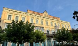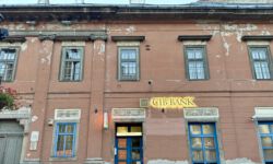 Der Gepäckträger hat sich aufgrund der Holperstrecke und den schweren Packtaschen offenbar so gesenkt, dass er auf dem Reifen liegt. Daher also die Schabegeräusche. Außerdem hat der Reifen auch etwas Luft gelassen, aber zum Glück nicht vollständig. Wir bringen den Gepäckträger wieder an seine vorgesehene Position, denn Klaus hat wohlweislich den Spezialschlüssel dafür dabei. Dann geht es zu Fuß zum Essen in die Stadt, die eine schöne Fußgängerzone hat. Manche Häuser wirken allerdings etwas kubanisch.