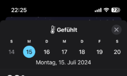 Wir fahren über die Brücke und müssen nun nur noch wenige Kilometer durch Stadtgebiet fahren, um zu unserem Apartment zu kommen. Kurz vorm Ziel macht dann mein Handy nochmals schlapp. Trotz Powerbank keine Energie mehr. Zum Glück hab ich die Buchung auch noch auf Papier dabei. Irgendwie hatte ich die Adresse wohl auch falsch eingegeben, so dass es nun mit Klaus‘ Handy und Google Maps noch einmal zurück in Richtung Innenstadt geht. Nach fast 80 heißen Kilometern haben wir unser Tagesziel erreicht. Juhu! Trotz der Hitze war es tolle Fahrt ohne Pannen und es Spaß gemacht, dem geplanten Weg zu folgen. Unsere Räder können wir im Innenhof des Hauses parken und ein kleiner Supermarkt um die Ecke versorgt uns mit frischen Sandwiches und Getränken. Die übrig gebliebenen geschmierten Brötchen von heute Morgen möchten wir jetzt lieber nicht mehr essen. Ein Blick auf das Wetter von heute verrät uns, dass es 34 Grad im Schatten mit einer gefühlten Temperatur von 36 Grad gewesen sein soll. Aha. Wo war jetzt noch der Schatten?