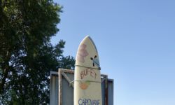Mittags wird es dann doch ziemlich warm. Wir versuchen ein schattiges Plätzchen für eine Pause zu finden. Aber in diesem Land gibt es einfach keinen Schatten. Nirgendwo. Er ist einfach komplett abgeschafft worden. Es gibt überall nur Sonne, Sonne, Sonne. Die erste Trinkpause muss also in der heißen Sonne stattfinden, die gnadenlos brennt, wenn man nicht mehr fährt. Also schnell wieder aufs Rad. Dann lesen wir auf einem Schild Horny Bar! Super, da wollen wir natürlich hin. Ich nehme die Bar in mein Navi auf und wir verlassen die Trasse an der passenden Stelle. Ein weiteres Schild bestätigt, dass es hier zu einer geilen Bar geht, die wir ganz dringend benötigen, daher nehmen wir den Umweg gerne in Kauf.