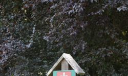 Also wieder zurück zur geliebten Trasse. Im näxten Ort, den wir eine Stunde später erreichen, ist es nicht viel besser. Es ist halb eins und die Bude öffnet erst um zwei, der kleine Supermarkt um drei. Wir haben jetzt schon ganz schön viel Durst und unsere Reserven gehen stark zur Neige. Das kleine Restaurant an der Ecke macht auch erst um drei Uhr wieder auf. Offenbar sehen wir verzweifelt genug aus, so dass uns drei Frauen empfehlen, an die Scheibe des kleinen Restaurants zu klopfen. Das machen wir natürlich und nach geraumer Zeit kommt Frau Schlotterbeck um die Ecke und wir dürfen Getränke kaufen, die wir dann draußen auf der kleinen Terrasse (im Schatten!) trinken können.