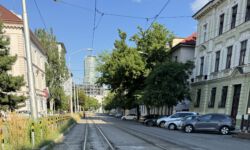 Nachdem wir wie Steine geschlafen haben, machen wir uns nach dem Frühstück auf zu einer Stadtbesichtigung. Die Altstadt ist nicht weit entfernt und wir können zu Fuß laufen. Die Fahrräder dienen derweil als Wäscheständer, da wir keinen Balkon oder eine Terrasse haben. Als erstes fällt uns der krumme Asphalt an den Straßenbahnschienen auf, dem offenbar auch ein wenig zu heiß geworden ist. Die Schienen scheinen in Ordnung zu sein, denn die Straßenbahn rattert einfach darauf entlang.