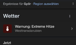 Für den heutigen Tag wird vor einer außergewöhnlichen Wetterlage gewarnt. Es soll in ganz Westtransdanubien extreme Hitze geben. Es werden dabei aber „nur“ 32 Grad angegeben, das hatten wir vorgestern schon heftiger mit gefühlten 36 Grad. Außerdem fahren wir heute tatsächlich mal mit Sicht auf die Donau und die fließt zwischen Westtransdanubien in Ungarn und der Slowakei. Alles besser als Regen, der Fahrtwind wird uns schon kühlen.