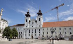 Dann sehen wir ein großes Schild mit einer Pokerclub-Werbung. Da ist doch das Casino nicht weit und damit auch die Grenze, die wir auf einer Donaubrücke überqueren. Auf dem Burgberg sehen wir die größte katholische Kathedrale Ungarns, eine der größten Kirchenbauten Europas, die Kathedrale Mariä Himmelfahrt und St. Adalbert, die imposant über der Stadt schwebt. Mein Fahrrad schwabbelt hinten immer mehr, so dass ich den Ruxsack auf meinen Rücken nehme. Nun geht es etwas besser, aber gut ist es nicht. Wir schleppen uns mit dem Rad bis zur Unterkunft und nach einer Pause inspizieren wir das Fahrrad erst einmal.