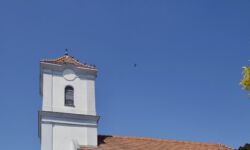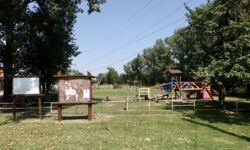 Es geht weiter und wir suchen einen Ort, in dem wir eine Pause in einer kleinen Bar oder in einem Restaurant machen können oder in dem wir zumindest kalte Getränke nachkaufen können. Wir fahren daher in den näxten Ort am Wegesrand. Der ist allerdings total ausgestorben. Keine Autos auf der Straße, keine Fußgänger unterwegs, kein Kind auf dem Kinderspielplatz und kein Supermarkt oder wenigstens eine kleine Bude zu finden. Dafür ist der Friedhof ordentlich groß. Kein Wunder, hier wäre ich auch schon gestorben, wenn ich hier leben würde. Wir müssen es im näxten Ort versuchen.