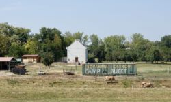 Nach ein paar Kilometern abseits der eigentlichen Route, kommt dann plötzlich die Ernüchterung. Wir fahren an einem Ortsausgangsschild vorbei, auf dem Horny Bar rot durchgestrichen steht. Oh je, Horny Bar ist gar keine Bar sondern ein Ortsname. Da war wohl unser Wunsch nach einer Bar so groß, dass wir gar nicht auf die Idee gekommen sind, dass es irgendetwas anderes als eine Bar sein könnte. Zurückfahren bringt nun nichts mehr. Ich sehe von weitem einen Kirchturm im näxten Ort, daher habe ich Hoffnung auf eine Art Bar oder ein Restaurant für ein kaltes Getränk.