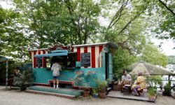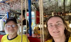 Wir gehen zu Fuß den Berg runter und ich suche die Rooftop Bar, in der ich schon mit Werner gesessen habe. Ich finde sie natürlich und wir lassen uns ein Getränk mit einem außergewöhnlichen Blick schmecken. Und weil wir Kontraste sehr mögen, gehen wir über die Kettenbrücke in eine weitere Ruinenbar. Das Csendes Létterem (deutsch: Ruhiges Wohnzimmer) ist eine gemütliche Wohnzimmerbar im Vintagestil mit vielen verschiedenen Tischen und Stühlen und jeder Menge Krempel an den Wänden und der Decke. Die Bedienungen sind total freundlich und wir fühlen uns wohl in diesem Wohnzimmer. Dann ist es Zeit nach Hause zu gehen. Wir müssen unsere Sachen wieder in die Fahrradtaschen packen, denn morgen geht es zurück nach Wien.