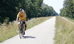 Wie bisher jeden Tag fahren wir kilometerlang geradeaus durch die brennende Sonne. Kein einziges Fahrrad außer uns ist hier auf der Fahrradtraumstraße unterwegs. Der Fahrbahnbelag ist