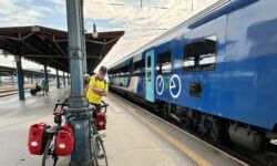 Nach dem Frühstück packen wir unser Gepäck auf die Fahrräder und fahren frühzeitig zum Budapester Bahnhof Keleti. Ich habe Sitzplätze für uns und die Fahrräder im selben Waggon gebucht. Wir finden schnell unser Gleis und der Zug steht sogar schon bereit. Wir hängen die Fahrräder an die reservierten Haken und setzen uns hin. Der Zug wird rappelvoll und wir sind froh, dass wir feste Sitzplätze haben. Nach zweieinhalb Stunden kommen wir in Wien an und fahren mit den Fahrrädern zum Stellplatz zurück, auf dem Cherry Lady auf uns gewartet hat. Wie schön, nun geht die Reise mit dem Bus weiter.