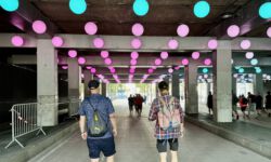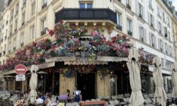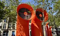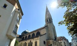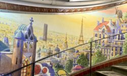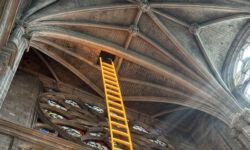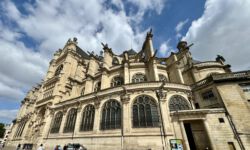 Wir fahren mit der Metro zur Kirche Saint Eustache, die eine besondere Leihgabe beherbergt. Die Himmelsleiter, die seit dem Frühjahr 2023 auf der Lambertikirche in Münster als Kunstobjekt befestigt war, hängt nun für eine Zeit lang in der Kirche Saint Eustache. Sie soll danach wieder zurück nach Münster kommen. In der Weihnachtszeit leuchtet sie besonders schön, finde ich.