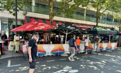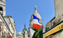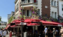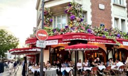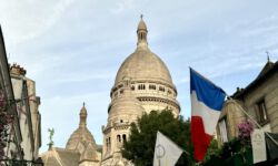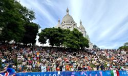 Danach treffen wir uns mit Hagi am Centre George Pompidou wieder, der von den beiden Handballspielen zurückkommt. Am Gebäude hängt eine riesengroße Leinwand, aufvder Bilder zu Olympia präsentiert werden. Nach einer Pause fahren wir zum Montmartre, um das Fahrrad-Straßenrennen der Frauen anzusehen. Wir setzen uns erst einmal auf eine Bank vor der Basilika Sacré Coeur und suchen uns dann einen guten Platz an der Strecke. Die Frauen fahren dreimal in einer langen Schleife um Sacré Coeur herum.