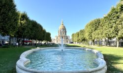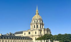 Dann gehen wir zum Invalidendom, den wir alle vorher noch nicht gesehen haben. Leider ist er schon geschlossen, aber das goldene Dach glänzt wunderbar in der Sonne. In der Nähe ist ein schöner Park, in dem wir einige Zeit sitzen. Dann ziehen wir weiter zur Avenue des Champs-Élysées und flanieren vom Place de la Concorde bis rauf zum Arc de Triomphe. Ein Teil der Strecke ist allerdings abgesperrt, weil sich am Place de la Concorde zwei Wettkampfstätten befinden. Daher ist auch diese Metrostation gesperrt. Wir hatten uns schon drüber gewundert.
