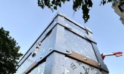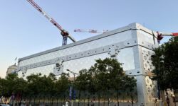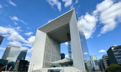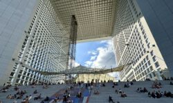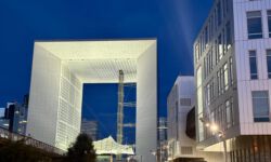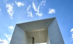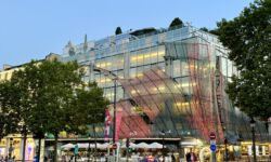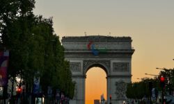 Wie immer ist es wunderbar über die Prachtstraße zu schlendern. Zum Teil ist sie aufgrund der Olympischen Spiele für Autos gesperrt und wir können einfach über die Straße laufen. In der Nähe des Triumphbogens befinden sich die Luxusläden von Louis Vuitton, Gucci und so fort. Der zukünftige Louis Vuitton-Laden hat vor der Baustelle ein krasse Fassade, die wie ein Louis Vuitton-Koffer aussieht. Durch den Triumphbogen sieht man den Sonnenuntergang und hat zudem eine Blick auf La Défense, Europas größter Bürostadt und einem Mekka für Architektur und Kunst.