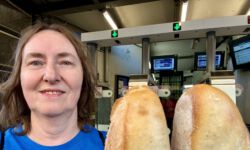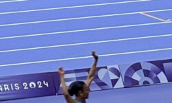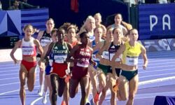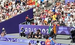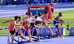 Heute morgen müssen wir sehr früh los, so dass wir nicht zu Hause frühstücken. Ich laufe vor und hole in der Nähe der Bahnstation Baguettes und Croissants für uns drei. Dann setze ich mich ans Gleis, schmiere Baguettestücke mit mitgebrachtem Käse und warte auf die Nachhut. Wir fahren heute zum Stade de France zu Leichtathletikveranstaltungen. Drei Stunden dauert unser Zeitfenster, in dem wir 1500 Meter Läufe der Damen in der Vorrunde, die Qualifikation der Herren im Speerwurf, Hoffnungsläufe in 110 Meter Hürden der Herren, die Qualifikation der Damen im Weitsprung sowie 400 Meter und 200 Meter Hürden Hoffnungsläufe der Herren sehen können.