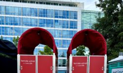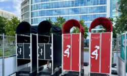Der Weg zum Stadion ist, wie gestern, total klasse. 80.000 Zuschauer gehen mit uns in dieselbe Richtung und alle sind freundlich, gut gelaunt und niemand drängelt. Jeder freut sich auf die Wettkämpfe, die wir sehen dürfen. Wir sind auch gespannt, das Stadion von innen zu sehen. Auf dem Weg stehen plötzlich Urinale, und zwar für Männer und für Frauen. Das gefällt mir. Da haben mal kluge Menschen nachgedacht und für Frauen einfache Schnellklos entwickelt, die dann sogar hergestellt wurden. Hier stehen sie nun zur Benutzung und ich probiere es sofort aus. Ruxzuck bin ich fertig, ohne in der Schlange zu stehen. Davon wünsche ich mir mehr, am besten bei jeder Großveranstaltung oder überhaupt überall.