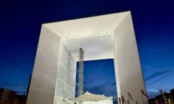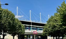 Wir verlassen die Schwimmarena und gehen zurück zur Metrostation. Dabei kommen wir noch einmal am Grande Arche vorbei, nun ist es aber bereits dunkel und er sieht beleuchtet einfach fantastisch aus. Wir fahren dann zurück zu unserem Häuschen und verfolgen noch die Zusammenfassung der Wettkämpfe des Tages im Fernsehen. Am näxten Morgen geht es schon früh los, denn wir fahren zurück nach Hause. Dabei kommen auf der Autobahn zum Abschied noch einmal am Stade de France vorbei. Wie schön!