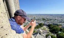 Hagi ist schon weg, als Klaus und ich aufstehen, denn er hat zusätzlich ein Ticket für zwei Handballspiele gekauft. Wir frühstücken erst einmal bevor es nach Paris geht. Dann fahren wir mit der U-Bahn zur Kathedrale Notre Dame, die aufgrund eines Feuers 2019 zu einem großen Teil zerstört wurde. Nun ist dort eine große Baustelle, aber Ende diesen Jahres soll die Kathedrale bereits wieder für Besucher geöffnet werden.