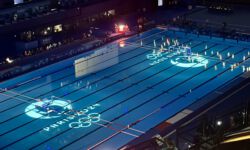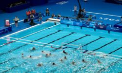 Dann fahren wir nach La Défense zur La Défense Arena, in der heute Abend zwei Wasserballspiele stattfinden. Australien spielt im Viertelfinale der Frauen gegen Griechenland und die Frauen aus Ungarn spielen gegen USA. Schon der Weg zur Arena führt uns durch den Grande Arche, der den modernen Triumphbogen darstellt und über zwei große Avenues in einer Achse mit dem Triumphbogen am Champs Élysées steht. Ich finde den Grande Arche genial, das Design gefällt mir sehr. Dann geht es in die Schwimmarena, die hinter dem Grande Arche liegt. Hier fanden auch die anderen Schwimmwettkämpfe statt. Zusammen mit zwölftausend weiteren Zuschauern sehen wir zuerst eine Lightshow bevor die beiden Wettkämpfe stattfinden. Wir sitzen ziemlich weit oben, aber dadurch haben wir einen guten Überblick über den Spielablauf und können alle Spielzüge gut verfolgen. Zimperlich sind die Wasserballfrauen beim Spiel nicht gerade. Manchmal sieht es so aus, als ob ein großes Krokodil ein Gnu von unten ins Wasser zieht und dann ein Kampf im Wasser stattfindet, bei dem das Gnu davon abgehalten werden soll, an den Ball zu gelangen. Die beiden Spiele sind sehr spannend und diese Sportart gefällt uns sehr. Australien und USA schaffen es schließlich ins Halbfinale.