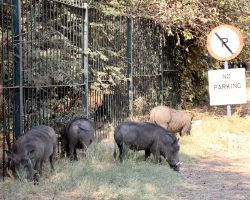 Dann laufen wir einfach den ganzen Tag zusammen mit Mark an den wunderschönen Wasserfällen entlang. Auf dem Rückweg müssen wir uns wieder in die Stempelschlangen einreihen und zurück in Sambia geht‘s dann Richtung Royal Livingstone Hotel. Ein Tipp von Clare! Auf dem Weg dahin begegnen uns Warzenschweine, Paviane, Giraffen und Zebras, die einfach so wie wir frei herumlaufen. Auf dem Sundeck im großen Garten des Hotels sitzen wir direkt am Sambesiriver, sehen einen Stein im Gras, der wie ein Krokodil aussieht und für die Hotelgäste dort schön hingelegt wurde. Etwas später wundern wir uns, dass sich der „Stein“ bewegt. Ups. Wir beobachten eine Nilpferdfamilie im Wasser und beim Blick auf den Sonnenuntergang hören wir plötzlich Clare, die genau am Tisch neben uns sitzt, zusammen mit ihrer Freundin Annie aus Dublin. Die Wiedersehensfreude ist groß und so verbringen wir wieder völlig unabgesprochen den ganzen Abend mit drei Iren zusammen. Da wir alle im selben Hostel wohnen, können wir auch gemeinsam den Heimweg antreten und den lustigen Abend da ausklingen lassen.