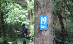 Am Ende der Serpentinen ist nicht etwa der Parkplatz in Sicht. Nein, jetzt geht es erst einmal durch einen Wald. Irgendwann sehen wir das erlösende Schild: 19 km. Jipiehhhh! Nur noch 400 Meter, ein Klacks! Am Ende des Trails landen wir allerdings nicht auf unserem Parkplatz. Der liegt am Ende der Straße, 800 Meter weiter. Die sind uns jetzt auch wurscht. Wir trotten zum Parkplatz und sind glücklich die Strecke in sieben Stunden geschafft zu haben.