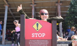Jazon L. stellen wir auf einem Parkplatz ab, der unser Ziel am Ende wird. Dann lassen wir uns mit einem Shuttlebus zum Anfang des Trails bringen. Natürlich sind wir nicht alleine an diesem Tag, aber wir finden das – für den Fall, das mal etwas passiven sollte – auch ganz beruhigend auf einer solchen Strecke über Stock und Stein. Außerdem macht es auch Spaß mit einigen Leuten zu sprechen und sie dann und wann auf dem Weg wiederzusehen. Mein BVB-Trikot erntet auch ein paar Kommentare, von denen nur einer arrogant ist, nämlich der von den Jungs aus dem südlichsten Bundesland.