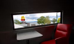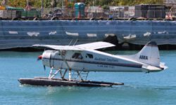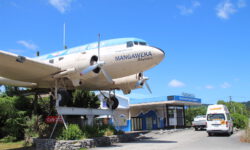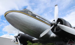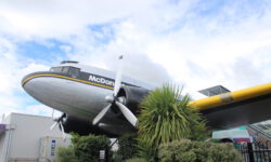 Wir verlängern eine Nacht auf diesem wundertollen Campingplatz und fahren zum Lake Taupo, dem größten Kratersee in New Zealand. Auf dem Weg dahin sehen wir uns Wasserfälle an, nicht sehr spektakulär, aber die Wasserfarbe ist nice. Lake Taupo ist wirklich riesengroß und schön anzusehen. Dann aber entdecken wir etwas wirklich Spektakuläres: Mc Donalds, von den Kiwis Maccas genannt. Hamburger kauft man wie immer im Laden, aber es gibt Sitzplätze in einer alten DC 3, einem echten Rosinenbomber. Darin waren wir noch nie, schon gar nicht mit Cola und Burger. We love it!