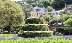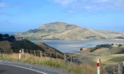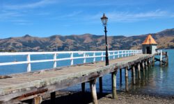 Akaroa ist ein kleiner Ort mitten auf der von Vulkanen geformten Onawe-Halbinsel südlich von Christchurch. Akaroa heißt „Langer Hafen“ auf Maori. Der lange Hafen ist in Wirklichkeit ein langer Meeresarm. Die Fahrt nach Akaroa ist schon wunderbar. Es geht durch die Berge und immer wieder sieht man Buchten mit blauem Wasser von oben. Der Ort selbst ist touristisch gut erschlossen. Es halten Kreuzfahrtschiffe und täglich kommen Reisebusse voller Touristen. Aber das macht den Ort lebendig und abends sind außer den Übernachtungsgästen alle wieder weg.