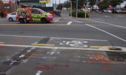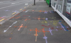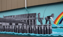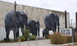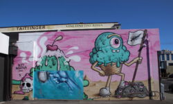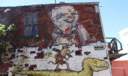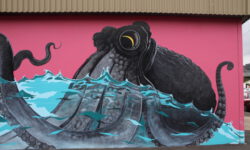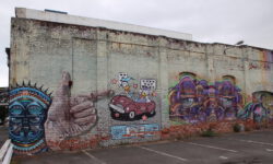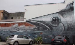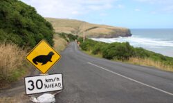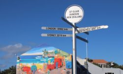 Am näxten Tag geht es bis Dunedin. In der Stadt und auf der zugehörigen Halbinsel Otago sieht es sehr schottisch aus und das Wetter ist ebenfalls schottisch wechselhaft und nachts bitterkalt. Jedenfalls kommen uns acht Grad in einem unbeheizten Bus ziemlich ungemütlich vor. Der Name dieser zweitgrößten Stadt der Südinsel kommt aus dem Schottisch-Gaelischen Dùn Èideann, für Edinburgh. Wir fahren mit den Rädern durch die Straßen und finden immer neue Graffitis, die uns ein bisschen an Melbourne erinnern.