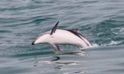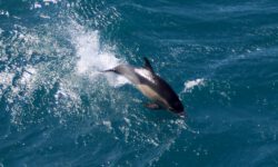 Auf der Rückfahrt in den Hafen begleitet uns dann auch noch eine große Delfingruppe. Neben Dusky-Delfinen sind auch ein paar der kleinen, schwarz-weißen Hector-Delfine dabei, die es nur in Neuseeland gibt. Jetzt kann ich endlich ein paar Fotos machen. Dass diese Tour so schön wird, hatte ich heute Morgen nicht im Entferntesten geahnt. Die Freude bleibt den ganzen Tag in meinem Gesicht und das Flipperlied im Ohr.