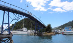 Angekommen in Picton fahren wir kurz zu einer kleinen Brücke in einer Marina, von der aus man, wenn man Glück hat, Mantarochen beobachten kann. Schon bevor wir diese Brücke erreichen, sehe ich einen großen Mantarochen im Hafenbecken. Er schwimmt allerdings schnell weg und es bleibt der einzige. Schade.