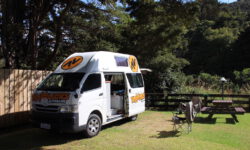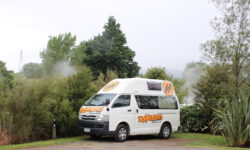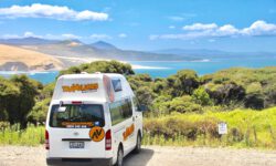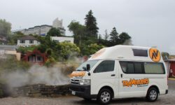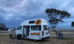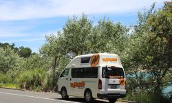 Nachdem wir unseren neuen Campervan abgeholt haben, fahren wir mit Jazon L. (JZL auf dem Nummernschild) und Snorky, unserem neuen überflüssigen Mitfahrer, los Richtung Norden. Wir freuen uns, dass wir endlich wieder campen dürfen. Snorky sitzt im Haltegriff am Armaturenbrett und hält mit seiner langen Nase Ausschau nach interessanten Spots zum Anhalten. Wir wissen noch nicht, ob es in Neuseeland genauso einfach wird mit einem Stellplatz auf einem Campingplatz, da wir mehrmals gewarnt wurden, dass Hochsaison ist und es möglicherweise voll wird.