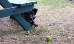 Damit der Autofahrer auch was trinken kann, fahren wir mit den Fahrrädern und nehmen uns nur ein kleines Stückchen dieses schönen Weges vor. Außerdem gibt es mittendrin noch einen alten, stillgelegten Eisenbahntunnel, der 1356 m lang ist. Da wollen wir durchfahren. Wir beginnen unsere Wegstrecke in einer Taverne in der Nähe des Tunnels. Die Wirtin freut sich über Gäste und zeigt uns erst einmal ihren schönen Garten, in dem ihr Hund schon auf das Ballspielen mit dem Hundefreund wartet. Nach einem Bierchen geht es endlich auf die Piste.