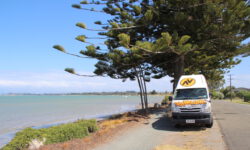 Dann geht es weiter nach Nelson, einem recht großen Ort am Great Taste Trail. Der Campingplatz ist riesig, wir haben Platz 758, ganz am Ende, aber dafür direkt am Meer. Wie gut, dass wir unsere Fahrräder dabei haben, damit können wir leicht über den Platz fahren und in den Ort hinein. Hier gibt es viele kleine Brauereien und Weingüter. Auf dem Weg sehen wir schon viele Hopfen- und Weintraubenfelder. Der Great Taste Trail ist 136 km lang und führt an den Weingütern und Brauereien vorbei und man kann, immer wenn einem danach ist, eine kleine Rast einlegen.