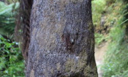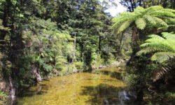 Den näxten Campingplatz fahren wir spontan an und landen auf einem Platz mitten im Kauriwaldgebiet. Um den Platz herum fließt ein Fluss, in dem einige Kinder schwimmen. Das beste ist aber, dass es auf dem Platz Glühwürmchen gibt. Ein Schild in einer versteckten Ecke des Platzes weist darauf hin. Tatsächlich, nach Einbruch der Dunkelheit fangen sie an einer Wand im Gebüsch an zu leuchten. Ich versuche ein Foto zu schießen. Auf dem sehr dunklen Foto kann man ein paar Glühwürmchen entdecken, wenn es drumherum auch dunkel ist. Probiert es mal!
