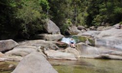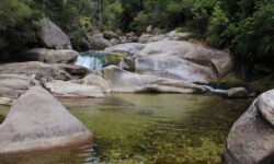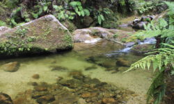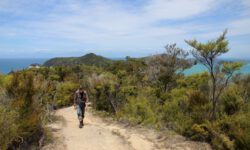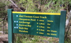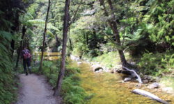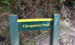 Der Wanderweg geht auf und ab durch den Wald und es gibt auch einige zusätzliche Abzweige zu Stränden, Wasserfällen oder Cleopatras Pool. Cleopatras Pool wollen wir uns nicht entgehen lassen. Das Wasser da soll sehr klar und sauber sein. Auf dem Weg dahin treffen wir zwei Frauen, die sogar drin gebadet haben. Gute Idee, das möchte ich auch ausprobieren. Das Wasser ist ordentlich kalt, aber tatsächlich sehr klar. Ich schwimme erst einmal rüber zu einem Wasserfall. Dann sehe ich im Wasser einen riesigen Aal und hoffe, dass er mir auf dem Rückweg durchs Wasser nicht um die Beine scharwenzelt. Glück gehabt, ich sehe ihn nicht wieder.