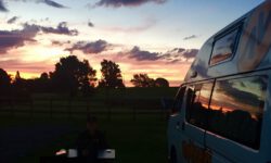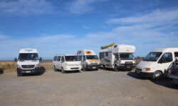 Wir suchen uns einen Stellplatz am Wasser, weil es zum Zurückfahren zu spät ist und in der Klüste zwischendurch gibt es keine Campingplätze. Dieser Platz kostet nichts und wir sind nicht die einzigen hier. Ungefähr 20 weitere Camper verbringen hier auch die Nacht. Strom gibt es nicht, nur zwei, immerhin saubere, Plumpsklos. Draußen zu sitzen ist wegen des Windes praktisch unmöglich, so verstecken sich alle in ihren Fahrzeugen und machen es sich drinnen gemütlich. Ab und an begegnet man sich auf dem Weg zum oder vom Plumpsklo. Die sind natürlich nachts stockduster, aber wir haben ja unsere Kopflampen… 🙂