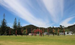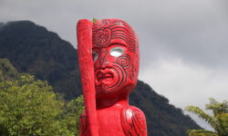 Der Campingplatz in Paihia liegt direkt an der Bay of Islands und wir bekommen sogar einen Stellplatz mit Blick aufs Wasser. Am nächsten Morgen sehen wir uns den quirligen Ort an und fahren dann zu den Waitangi Treaty Grounds. Hier wurde der erste Vertrag der Briten mit den Maori unterzeichnet. Wir könnten viel über die Geschichte der Maori und der Briten lernen, aber bei dem der Eintrittspreis von 30 Euro pro Ausländernase beschließen wir lieber auf die näxte Gelegenheit zum Verkleinern unserer Bildungslöcher zu warten.