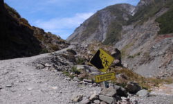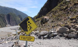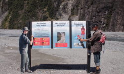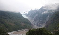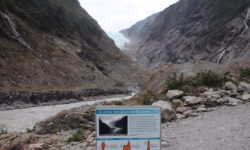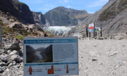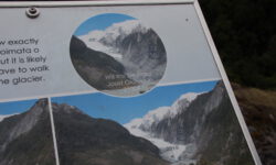 Wir fahren weiter. Der Campingplatz in Franz-Josef liegt superschön im Regenwald und an den Bergen. Das Meer fehlt hier, dafür gibt es kostenfrei Hot Pools direkt auf dem Platz. Ich bleibe sitzen, bis ich schrumpelige Finger kriege. Das Wasser ist sooooo schön warm. Dann wandern wir zu den Gletschern. Unterwegs finden wir Hinweisschilder mit Fotos, auf denen wir erkennen können, wie rasant die Gletscher schmelzen. Wenn man eine exponentielle Abnahme der Eismasse annimmt, dann lassen sich daraus wunderbare Mathematikaufgaben erstellen.