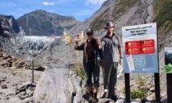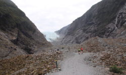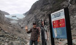 Die Gletscher beeindrucken uns deutlich mehr, obwohl man nur bis 750 Meter bzw. 450 Meter an die Eisfläche herankommt. Die Wege über Stock und Stein sind manchmal ganz schön anspruchsvoll, aber so macht das Wandern viel Spaß und wird nicht langweilig. Die Landschaft ist hier im Westen der Südinsel extrem abwechslungsreich. Neben Bergen, Gletschern, Regenwald sieht man das Meer, Meeresarme, Flüsse und Seen. Alles liegt dicht beieinander und wechselt sich beim Durchfahren ständig ab.