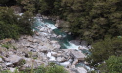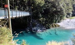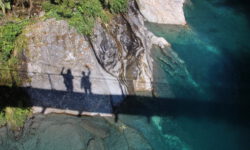 Auf dem Weg in Richtung Queenstown halten wir erst einmal an den Blue Pools. Schon das Wasser im Fluss ist türkisblau. Das Wasser in den Pools ist wunderschön klar und tief türkisfarben und man kann bis auf den Grund sehen. Eine Hängebrücke führt über die Pools weiter in den Wald hinein.