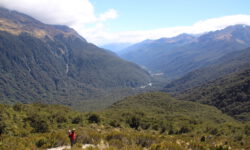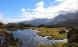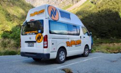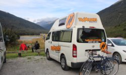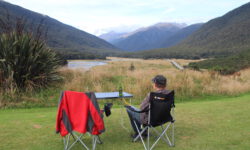 Davon abgesehen ist der Milford Sound eine wunderschöne Fjordlandschaft mit einigen sehr schönen kurzen oder längeren Wanderwegen. Der Campingplatz liegt direkt am Fjord in einem Wäldchen mit Blick auf die Berge. Dazwischen fließt noch ein Fluss, also perfekte Bedingungen für die Blutsauger. Zum Glück gibt es auf dem Platz eine große Küche mit Esszimmer und Wohnzimmer mit großen Fensterscheiben zum Raussehen. Der Blick auf den coolen T2 ist auch nicht schlecht. Draußen zu sitzen ist wegen der Sandflies meistens nicht möglich.