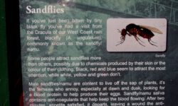 Man hört sie nicht, aber sie schwirren überall herum. Die blutrünstigen Monster der Südinsel: Sandflies. Der Name hört sich harmlos an, wie ein paar Fliegen im Sand. In Wirklichkeit sind diese stecknadelkopfgroßen, schwarzen Tierchen insbesondere auf der Südinsel und ganz besonders an Flüssen, Seen, im Wald, auf dem Berg, im Tal und auf Campingplätzen anzutreffen. Man nennt sie auch Dracula des West Coast rain forest! Und am allerliebsten trinken sie das Blut vom Ingenieur. Gut für mich, ich habe deutlich weniger Fans unter den Tierchen. Was tatsächlich am meisten nervt ist der Juckreiz, der tagelang anhält. Captain Cook hat schon festgestellt, dass es nicht möglich ist, nicht zu kratzen. Hier am Milford Sound haben sich besonders viele hungrige Sandflies versammelt.